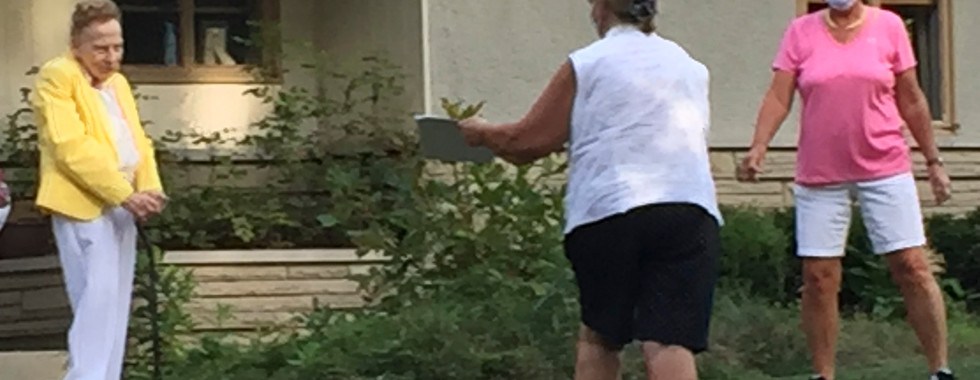 Her Zonta sisters didn't want Joan's birthday to pass without acknowledging and celebrating Joan. Due to Covid, a normal celebration was out of the question. So, the Zonta Club of Columbus organized a Birthday Car Parade complete with banners, balloons, and streamers. Over twenty Zontians gathered and decorated their cars and proceeded in a parade line to Joan's house. With horns blaring and voices singing, we celebrated Joan while she watched from her front porch. We stepped out of our cars long enough to sing a heart-felt happy birthday to Joan and to wish her a very happy day.